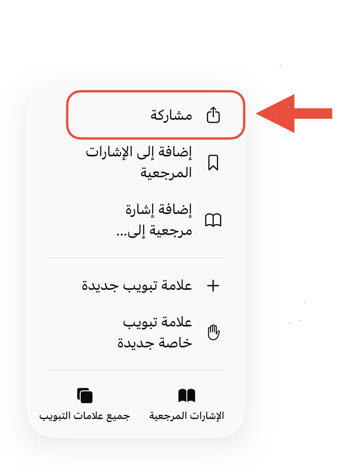 1- اضغط على رمز المشاركة في أعلى المتصفح